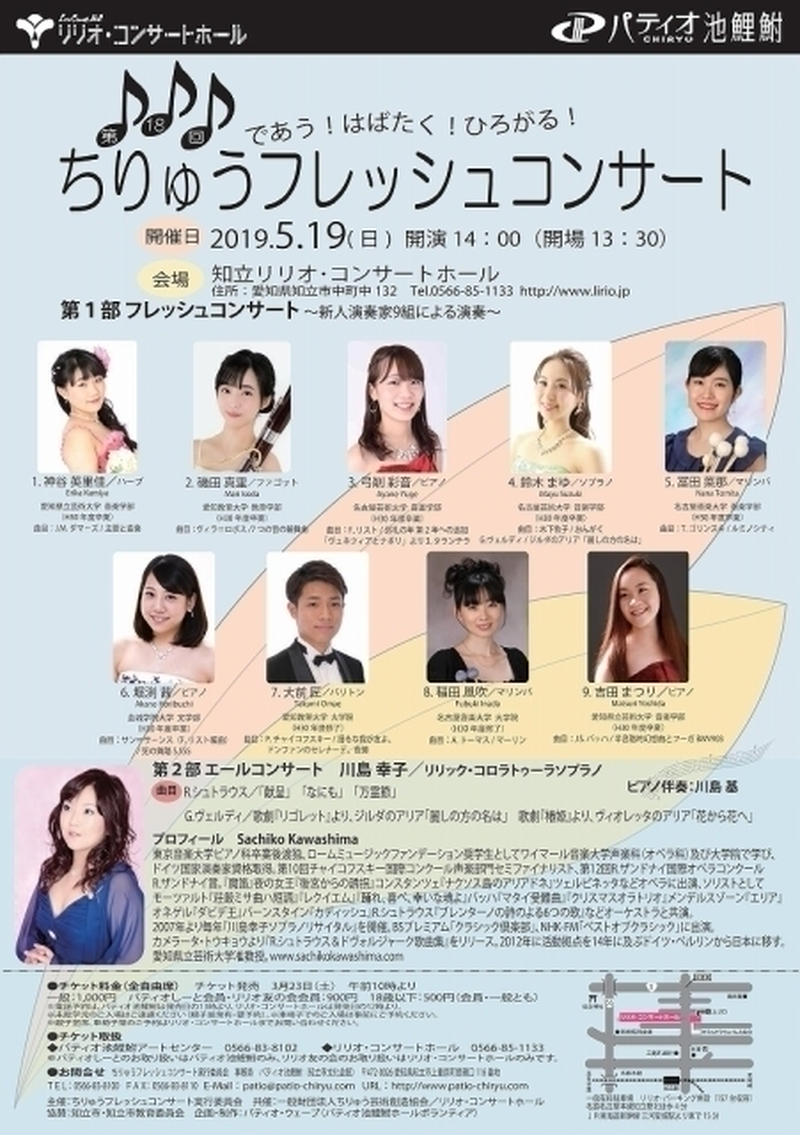 Konzert Sachiko Kawashima(Sop.) Aichi(JP) Lilio Konzertsaal(Chiryu) 14:00 |